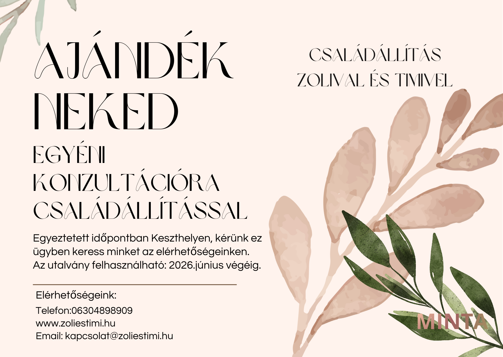 Ezért született meg nálunk az ajándékutalvány gondolata: egy kedves meghívás egy olyan útra, amit csak akkor lépünk meg, ha már ott van bennünk a vágy — a megértésre, a könnyebbségre, önmagunk felé.